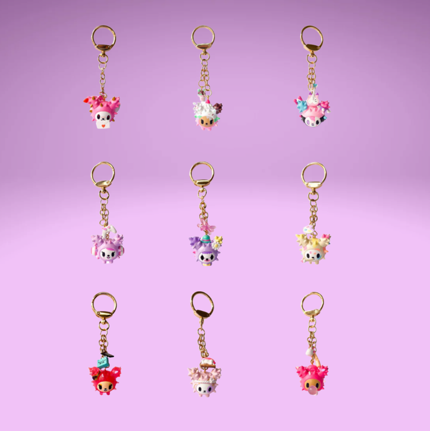 - Figure and accessories are attached to a gold swivel lobster clasp